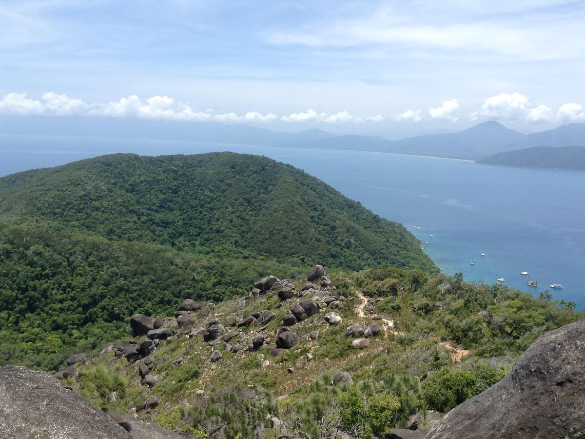 山頂からは、海に珊瑚礁が、島の中腹までは熱帯雨林が、そして山頂付近には針葉樹が広がるという神秘的な光景を楽しめました。