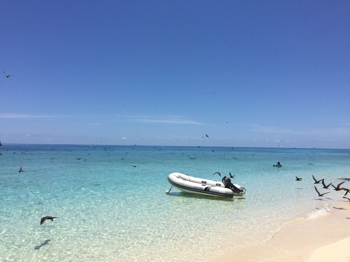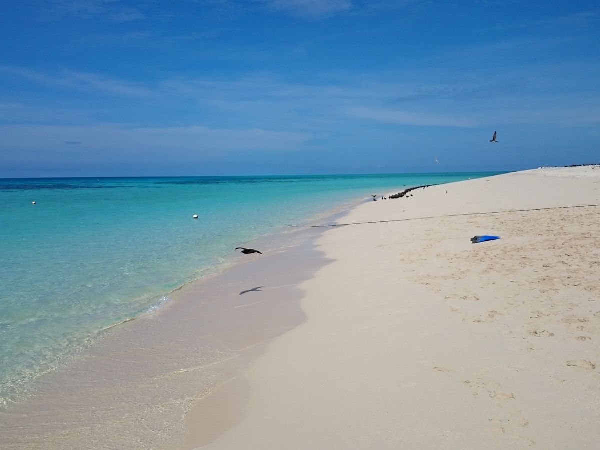 目の前に海がめが浮いてくるし、近くを泳いでいても逃げないし、白い砂と透明な海と青い空、まさに楽園。