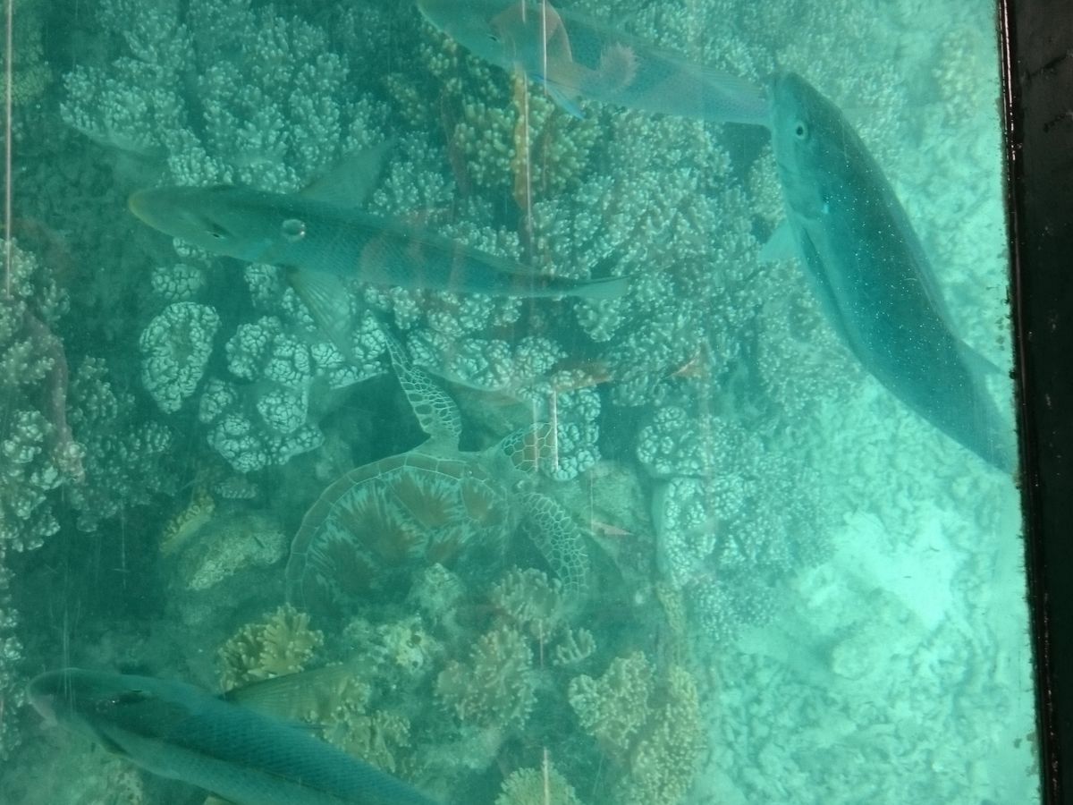 1時間ほど船に揺られ着いたグリーンアイランドは数十分もあれば1周出来てしまう小さな島なので着いて1時間ほど海で泳いで、そのあとはプランに付いていたグラスボートに乗り込み30分ほどのグレートバリアリーフの魚や亀達の舞(笑)に目を奪われてきました。