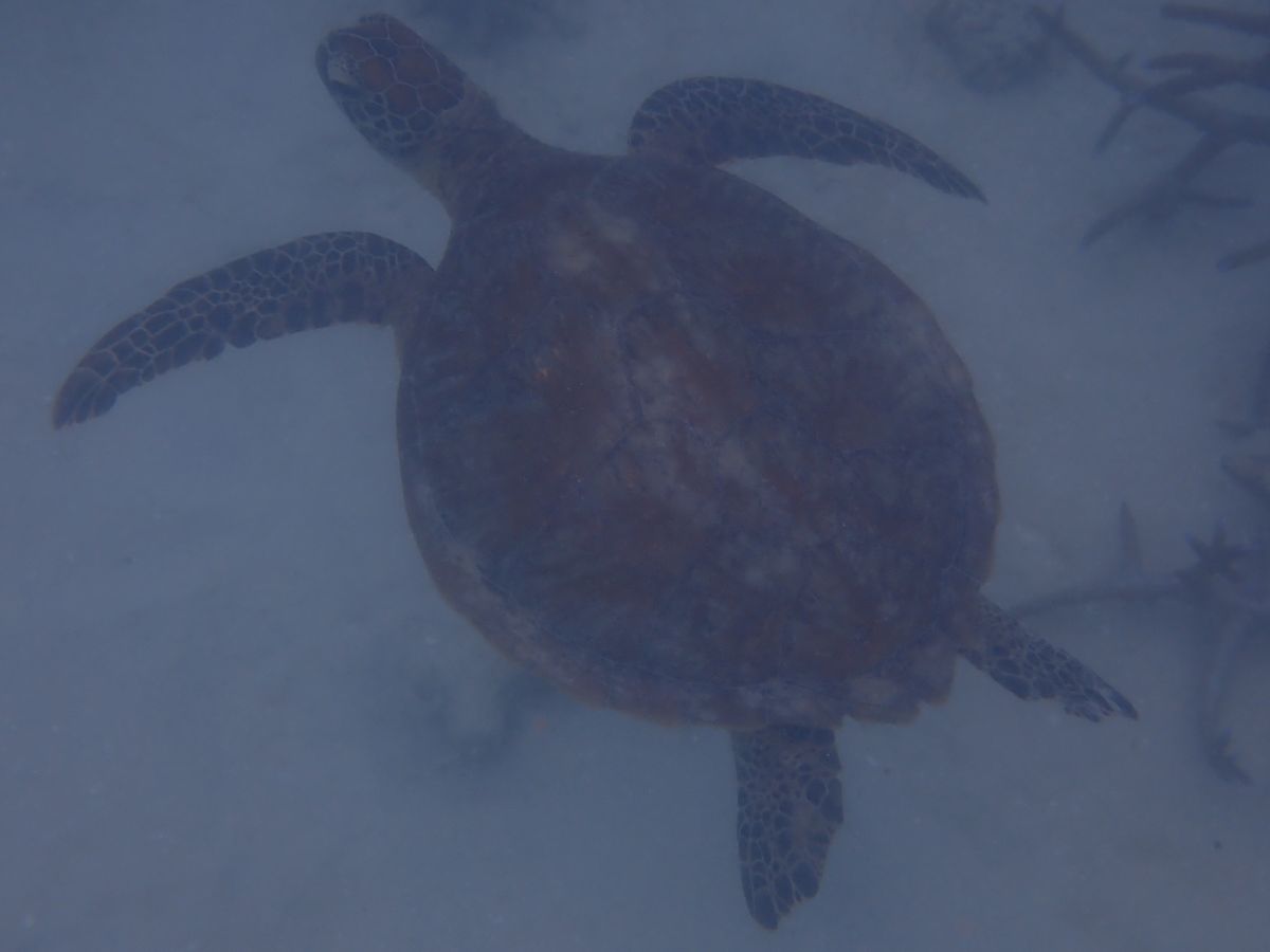 サンゴ礁のところまで行けば魚はたくさんいますし、カメも発見しました
