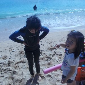 午後はミコマスケイでシュノーケリングしたり浜辺で遊んだり。日差しをよけるものが一つもないので日焼け対策は万全に。