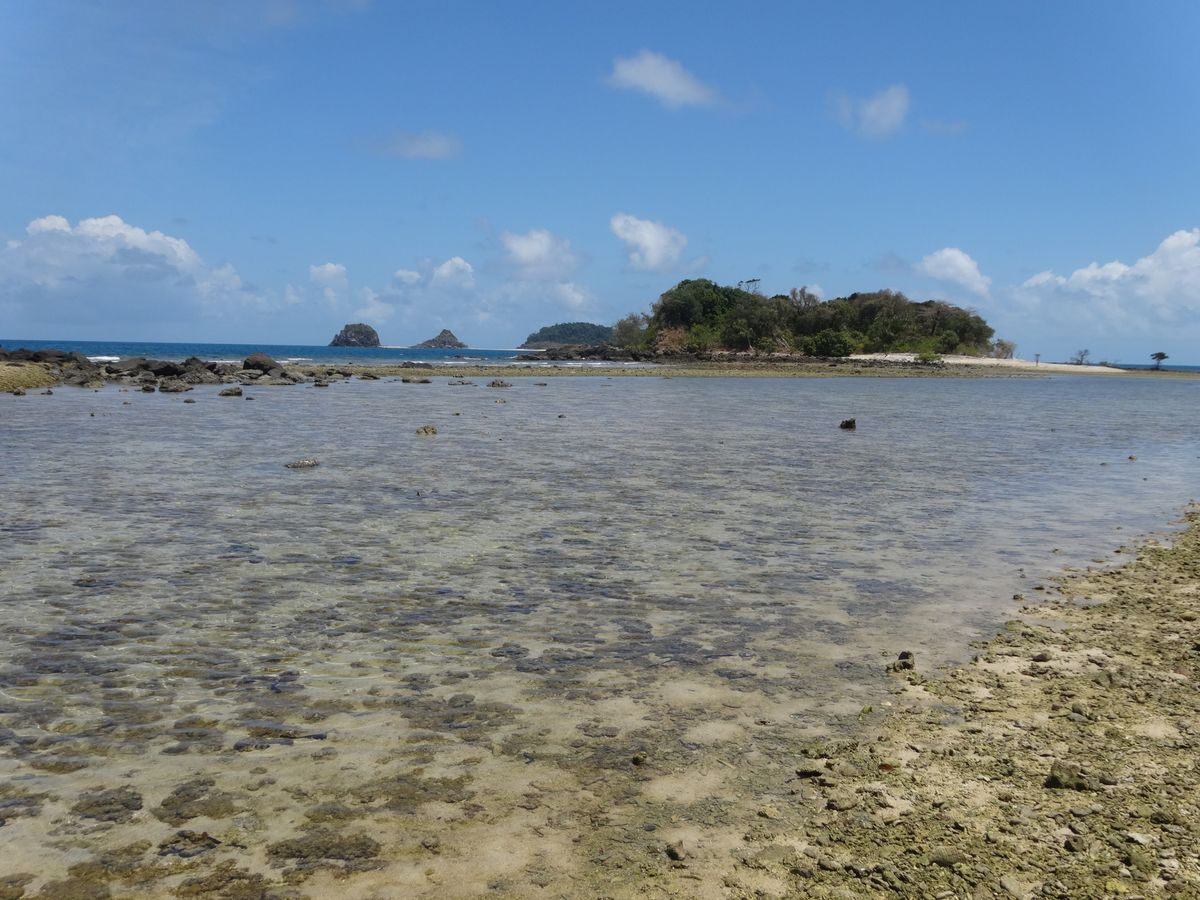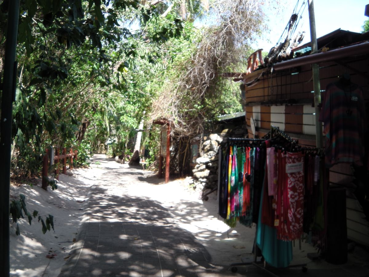 グラスボートの乗船時間は14時。まだ1時間あります。どうしよう?という事で島内1周。約40分くらいで1周できるそうです。ジャングルの中の木で作られた道をひたすら歩くのみ。特に何があるというものではありません。中国人の団体は大きな声で話しながら散策されていました。道のところどころにビーチに出るところがありますが、そこからの眺めは最高です。でも船着き場の反対側ビーチを歩いているのは私達だけ。表側とはずいぶん違います。