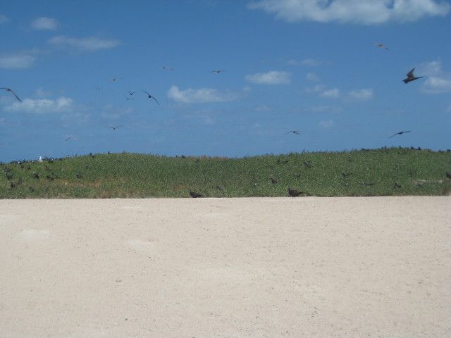 何も水平線に見えない。双胴船は海面をスピードを上げ疾走している。2時間近くたったその時、突然白く輝く客船が見え始めた・・・いや、白い島だった。木も無く家も見えない、海鳥だけが飛び交っている無人島なのだ。