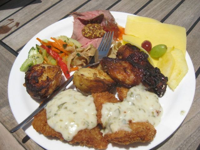 昼食が抜群にうまい。揚げたてのフィッシュフライ、そのタルタルソースが絶品。作りたてのチキン、ゆでた海老など、街のレストランよりおいしかった。