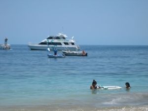 4歳の子連れで参加しました。ヨットということを少しも考えなかったので、思いのほかゆれて、乗り物に弱い私はちょっと気持ちが悪くなりましたが、外に出たりして気を紛らわせました。ミコラスケイにつくと本当に島というのではなく一面砂浜でとてもきれいでした。ヨットは直接ミコラスケイにはつかず、少し離れたところからボートでの移動でした。貴重品などを持っていくにはビニールの袋(子供のプールの袋のようなもの)を用意していくといいかもしれません。シュノーケリング初体験でしたが、思いっきりはまってしまいました。とてもきれいな海で何度潜っても飽きず(グリーン島にも行きましたが、そこよりもきれいでした)、子供そっちのけで楽しんでしまいました。(子供は砂浜で十分楽しんでいました)またお昼のランチはおいしく、特に魚のフライは主人も絶賛していました。