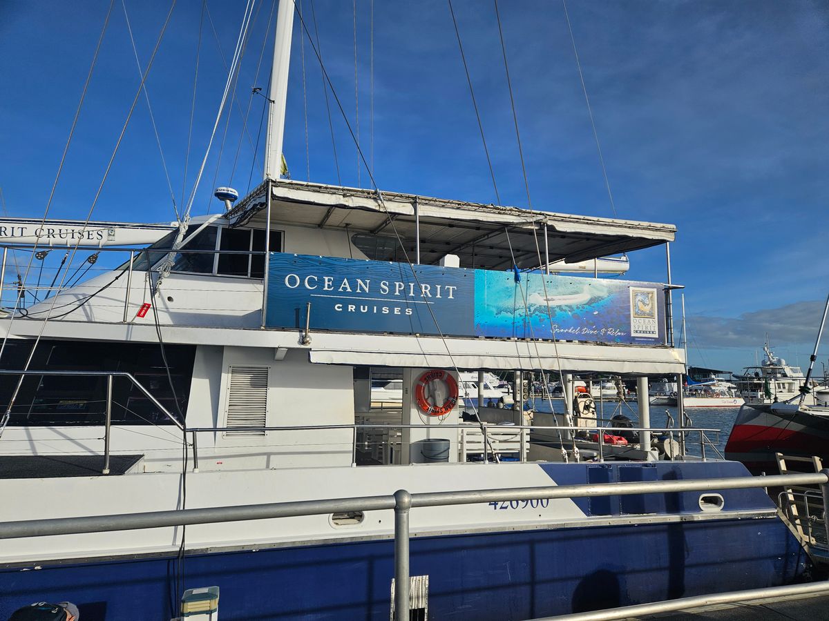 アウターリーフに移動する船は波が高く揺れに揺れました。ちょっとしたジェットコースターに乗っているよう。船酔いする人もちらほら。自分たちは日本から酔い止めを持って行って飲んでいたのでなんとかなりました。