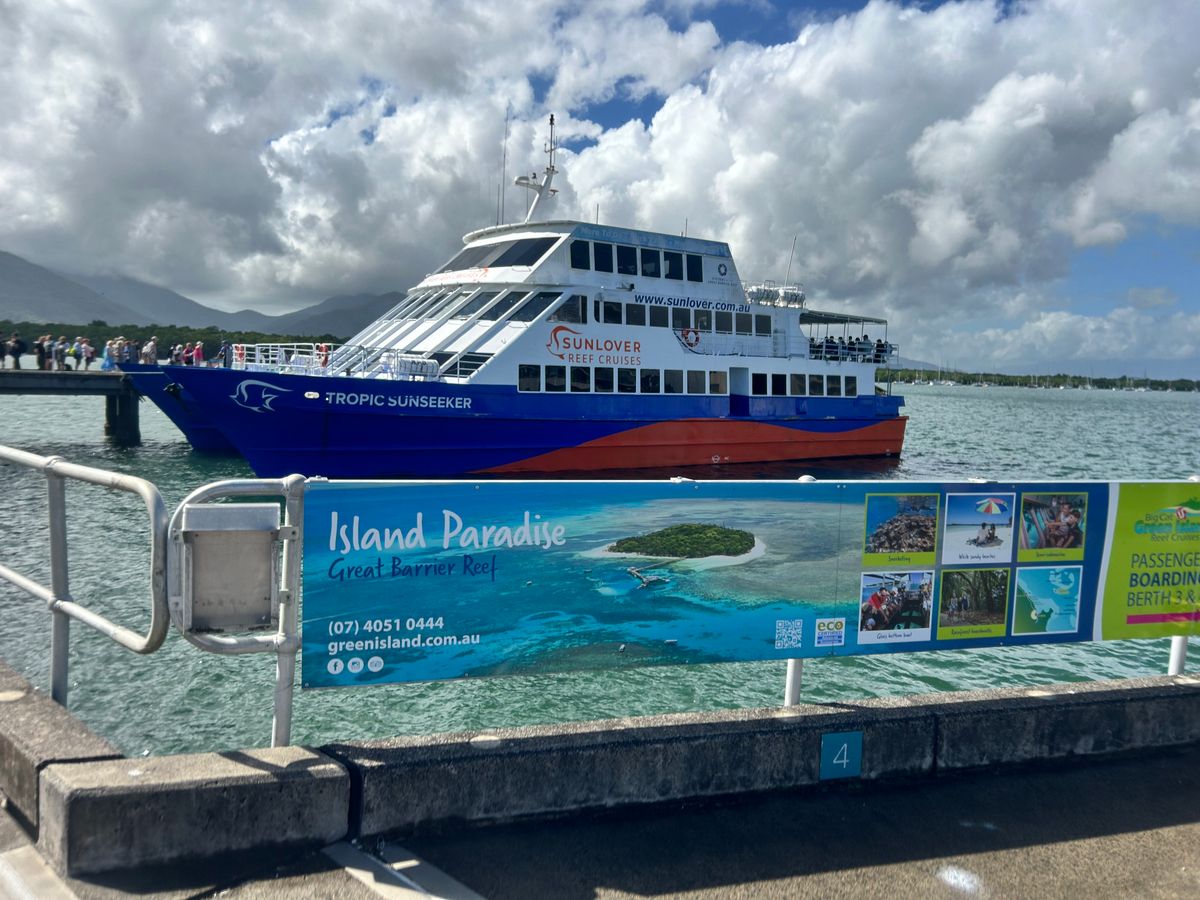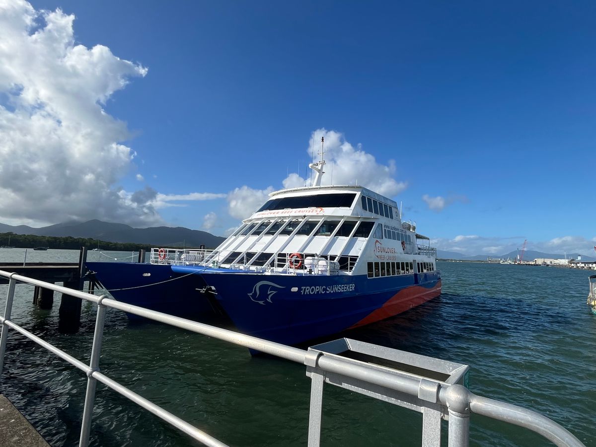 朝早くからケアンズのフェリーターミナルへ向かうと、カウンターにはかなりの行列ができていました。受付を済ませ、いざ乗船という段階になると、たくさんの観光客でごった返して列は無くなり、まるで早い者勝ちの様相に。窓側の席など、希望の席がある場合は、早めに並ぶことをおすすめします。