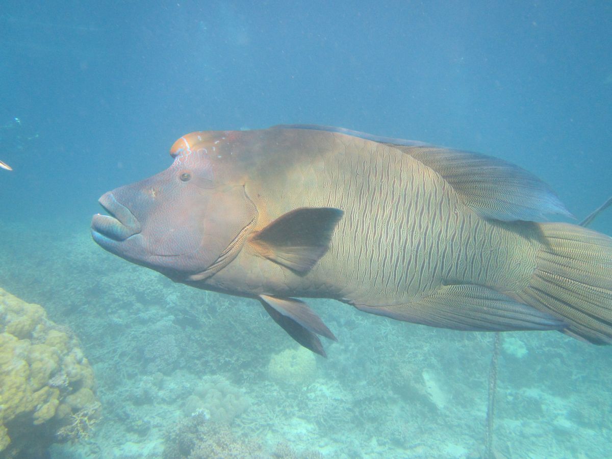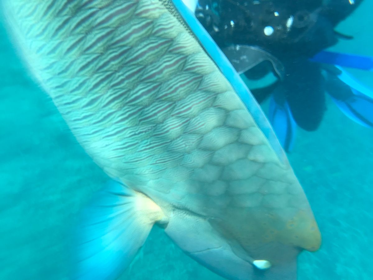 ナポレオンフィッシュは餌付けされていて、良く慣れていました。