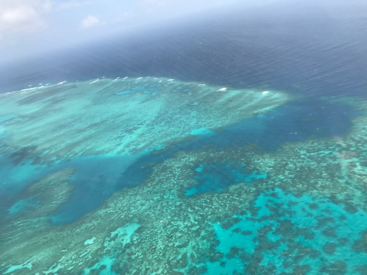 初めてヘリコプターに乗ったのですが、飛行機嫌いの私でも大変爽快で楽しいものでした。サンゴ礁の大きな広がりはやはり空から見るのが一番だと思います。また操縦してくれたパイロットとも話をすることが出来るので、充実した内容になりました。皆さんも是非参加してみてください。