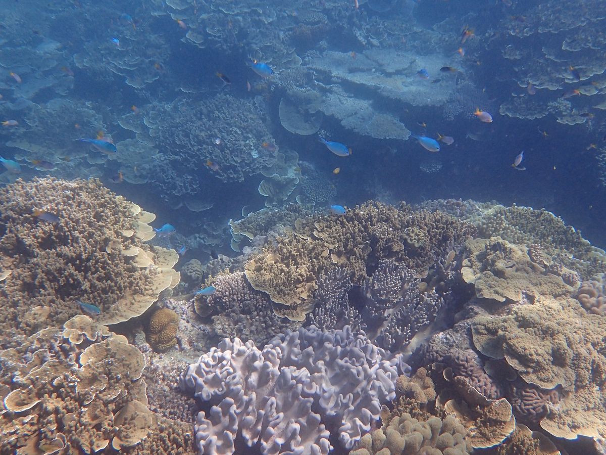 サンゴ礁が、まじかに見れました。魚は、大群は少ない感じでしたが、綺麗な魚が、悠々と泳いでいました。日本人スタッフが1名乗っておられ、安心しましたが、非常に不親切でした。不愉快に感じました。