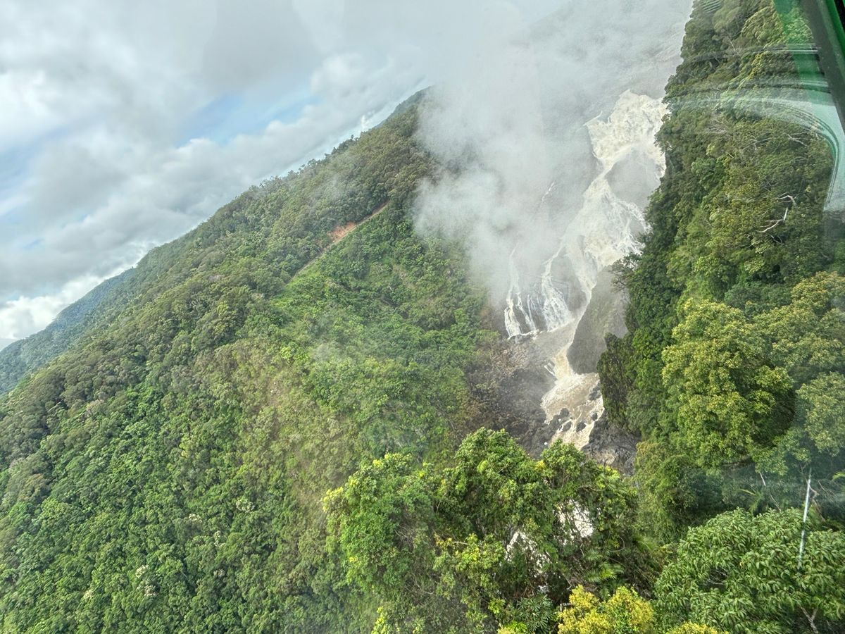 ただ、スカイレールはとても良く、途中のバロン滝駅で降りるべきです。なぜか、降りる人が少なく、不思議でした。バロン滝が目の前にせまり、連日の雨が多かったのか、ごう音と巻き上がった霧が体に降りかかり、気持ちよかったです。キュランダ鉄道のキャンセルによって、ツアー側ではスカイレール往復を提案頂きましたが、そうすると終着駅のスミスフィールド駅から更にバスに乗って帰らないといけなく、待ち時間を要する事を知ったので、家族であったため、キュランダ駅からUberを事前に予約。ケアンズ駅まで50分で帰れました。値段は、70ドル前後だったと思います。道を通る帰り道も、新たな経験、とても便利で快適でした。