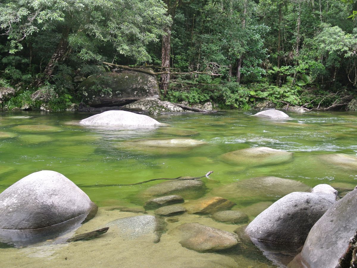 モスマン渓谷では熱帯雨林に入る前にアボリジニーの方の煙の儀式を見せてもらい、カラフルなペイントは全部天然の色素でできているんだよといった説明を聞きました。雨季で雨が続いたため川が増水していましたが、熱帯雨林に関する解説を聞きながら30分ほど散歩を楽しめました。それほど体力に自信がなくてもかなり整備してあるので歩けるルートだと思います。一部小さな川を越える箇所だけスリリングでした。