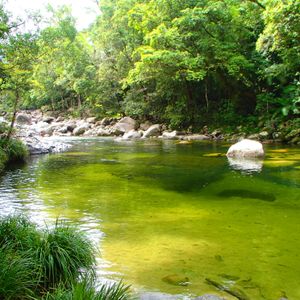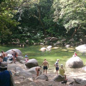 一番行きたかったモスマン渓谷へは、アボリジニの方にお清めの儀式のようなものをして頂いた後、バスで少し行って、整備された熱帯雨林の遊歩道を歩きます。緑がとても美しく、熱帯植物の説明もして頂きました。清流は、とても透明度が高く、周りの木々の緑が映えて、屋久島を思い出しました。しばらく足を浸けてマイナスインチャージができました。