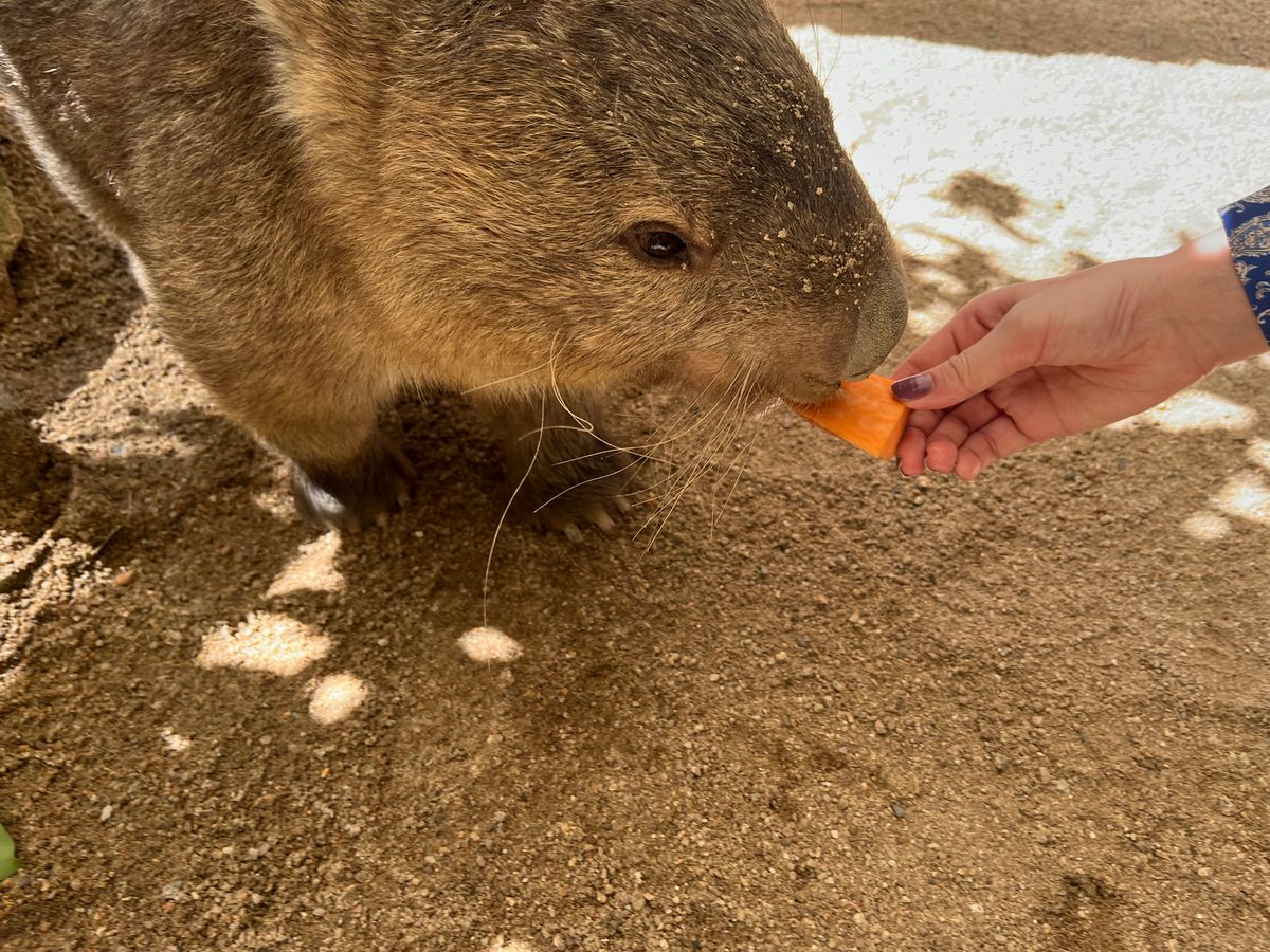 ワラビー、ウォンバット、ヒクイドリ、ワニと触れ合いごはんをあげられました