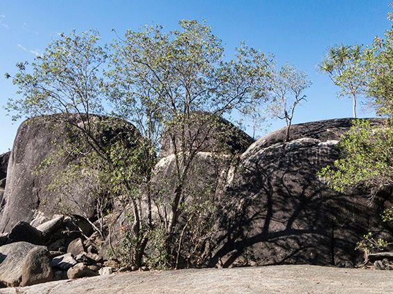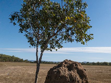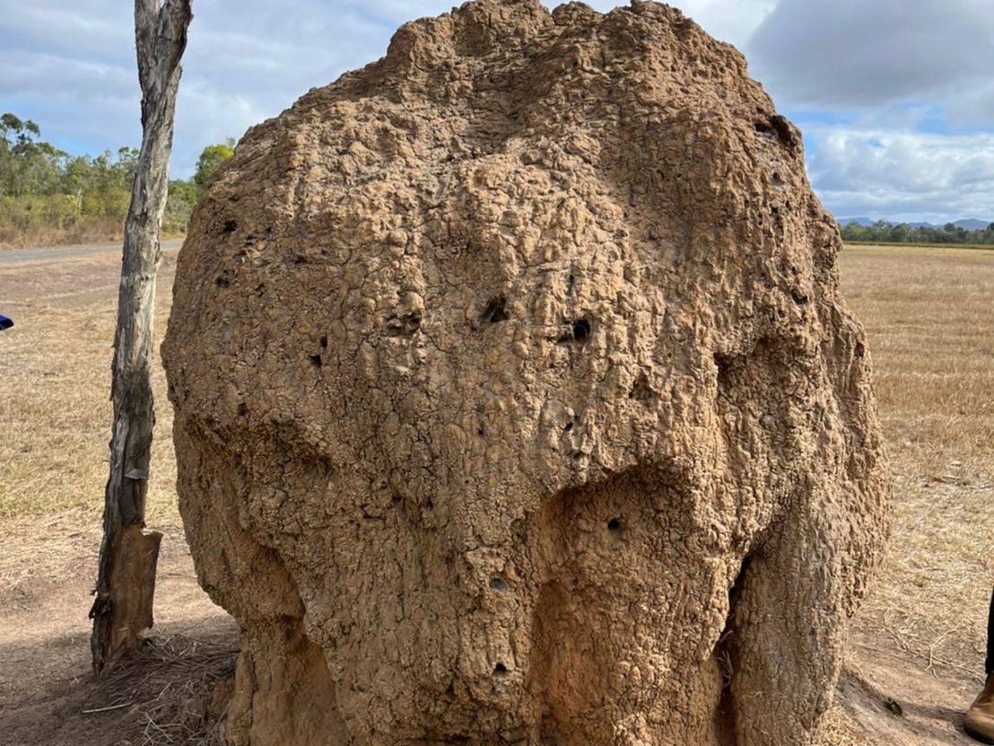 まず訪ねたのは巨大アリ塚。説明されなければ平原に取り残された岩にしか見えないが近づくと小さなアリがウロウロしている。今回ドライバーを担ってくれるウィルさんが数匹摘んで参加者に手渡してくれる。どうやら食べられるらしい….。積極的に食べた参加者もいれば〝食べられなかった〟参加者も….。オーストラリアらしさを実感するスタートだ。