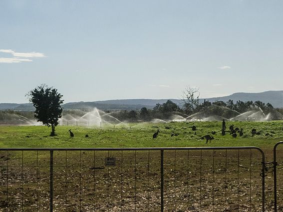 カモノハシに出会うための注意事項を車内で何点かナオさんからレクチャーされたあと、参加者がひと塊りになり小さな川のほとりへ移動。足音を立てず声を発しなければ高い確率で出会えるそうで、皆息を殺して川面を見つめる中、一瞬カモノハシが浮き上がってすぐに潜った。しばらく再浮上を待つが中々浮いてこない。その間、ナオさんは広範囲にポイントを探ってくれていたようで、少し離れた場所から手招きをしていて全員でその場に移動する。何度か移動を繰り返したあと最初の場所に戻るとカモノハシの緊張が解けたのか、1〜3分間隔で浮上しては少し泳いで潜る….を繰り返してくれるようになった。以前ブリスベンのLone Pine Koala Sanctuary内の水槽で見た神経質なカモノハシとは大違いで、自然の中で暮らすカモノハシが自分たちのペースで暮らしている様子を見られたのは本当に嬉しい体験となった。一足先にBBQの準備を始めているウィルさんのいる夕食会場に歩いて移動。