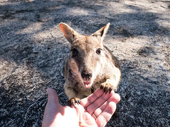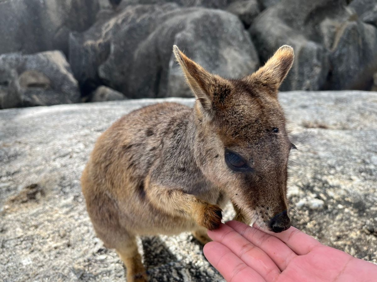中でも、ロックワラビーが1番かわいかったです。餌付けもできるのですが、餌をあげると、小さな手をちょこんと乗せて、もぐもぐ食べてくれました。