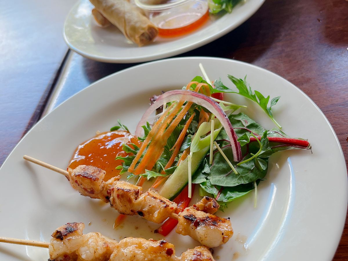 今の時期のオーストラリアはどこでもそうだけど量めっちゃ少ないのに高いここは2人で30ドルくらいだった(私が頼んだのは串2本と野菜ちょっとで12.5ドルとかだったかな…?)