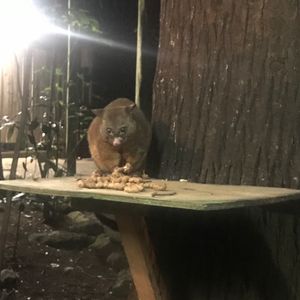 ガイドの明人くん。物知りで親切。蟻塚や絞め殺しのイチジクも良かったけど、一番はワラビーです。いっぱい寄ってきてとてもかわいかった。自分の手から餌を食べてくれて、触れて、初体験に感動しました。老若男女楽しめます。スカート・素足にサンダルの人がいましたが、夜の熱帯雨林も歩くのでかぶれないようズック・(長)ズボンの方が良いと思いますヨ。