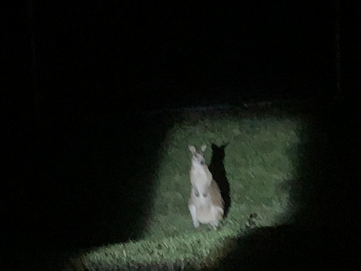 その後民家の方へ移動し、野生動物を捜索。見つけられたのはほぼワラビーだけでしたが、全員ワラビー目当てだったので大喜び。20~30匹くらいは見つけられたと思います。場合によっては全然見つけられないときもあるそうなのでとてもラッキーとのこと。