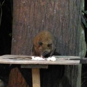 BBQディナーは美味しくはないですが、野生のポッサムが近くに住んでおり、餌を食べにきていました。