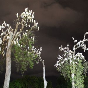 満点の星空鑑賞と野生動物観察ツアーに参加しました。ケアンズ到着後 楽しみにしていたツアーでしたが 残念ながら小雨と時々曇りのあいにくの天気のため 星空観察は期待薄。野生のキバタンと野生のワラビーを探しに行きました。キバタンはこんな所に?と思うスーパーの駐車場に発見!白い花が咲いているのかと思うほど大量に止まっていました。教えてもらわないとわからないほど 眠っているのか鳴き声もしませんでした。野生のワラビーは雨が好きと言う話で 郊外の住宅街へと探しに行きました。数匹のワラビー発見!珍しいオスのワラビーも出てきました。郊外なのか曇っていた空から少し星が見えましたがすぐ雲にかかってしまい残念。星空鑑賞はあきらめて ケアンズの素敵な夜景観賞に変更!高台の展望台へ行って来ました。とてもきれいな夜景でした。雨が降っていても 素敵な夜景や可愛い野生動物を見ることができてよかったです。次回はケアンズの晴れた日の星空鑑賞で 南十字星や他の星座を見に行きたいと思います。