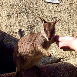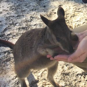 餌付け体験では野生のロックワラビーに餌をあげましたが、早く食べたいのか餌を持ってる手に爪を立ててきたのが少々痛かったのですがとても可愛かったです。