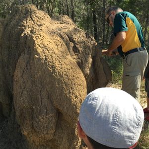まずはバスの移動中にビンゴをやり、巨大アリ塚見学(シロアリの試食あり)→バスの車内から野生のカンガルー探し→ロックワラビーの餌付け体験→ピーナッツのお店にてフルーツの試食→カーテン・フィグ・ツリー(絞め殺しの木?)→カモノハシ探し→オージーBBQ(カンガルーとワニのお肉の試食あり)→熱帯雨林散策→星空観測→ホテルという行程でした。