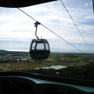 まずはスカイレール。真下に広がる世界最古の熱帯雨林の海、発着所のほうを見れば、光り輝く海、グリーン島までも見えて、360度広がる自然の美しさに見とれました。