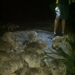 マリーバの目的地に到着すると、暗闇からワラビーたちが徐々に姿を現し、最終的にはツアー客4人に対して30匹程のワラビーが集まってきました。