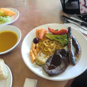 昼ごはんも、オージービーフを中心にたくさん食べられます。個人的にはチーズの種類がたくさんあってうれしかったです。