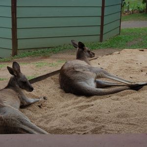 昼から夜中までたっぷり遊んでもらいました。メリーは日本語がじょうずでしゃべりがうまい。日本ではみれない動物をたくさんみせてもらいました。とくにかものはし・ロックワラビーの親子はサイコーにかわいい!見れる確率のひくい木登りカンガルーもみれました。夕食のあとの森探検、帰り道に夜空をみんなでみあげました。ゆったりと時間が流れた1日でした。メリーさん、ありがと!