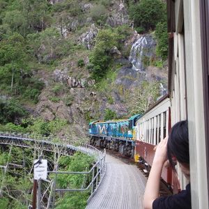 参加前には、スカイレールはいいけど、キュランダ高原鉄道は今ひとつ、という声も聞きましたが、私は鉄道もすごく印象的でよかったです。世界の車窓からで長く放送されていた鉄道ということは乗ってから知ったのですが、自分の乗っている列車も視界に入る景色は素晴らしかったです。