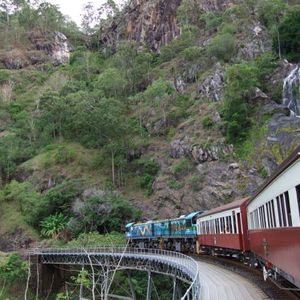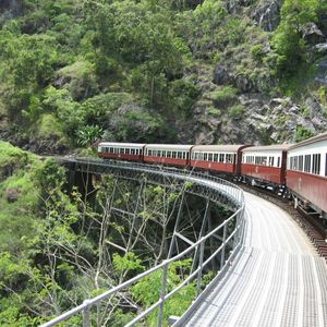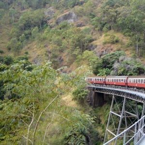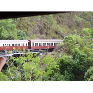 行きはスカイレールに乗ってキュランダへ行きました。スカイレールから見下ろす景色が良かったです。キュランダ村ものんびりと時間が流れている感じで良かったです。店の名前は忘れましたが、黒ビールを飲んだのですが、これがビール好きには、たまりませんでした^^帰りはキュランダ鉄道にてケアンズへ戻りました。ビューポイントが近づいてくるとガイドさんが、説明してくれましたし、汽車もスピードを落としてくれるので写真がとりやすかったです。テレビ番組の世界の車窓のオープニングで何年かこの映像が使われてたことで有名です。このツアーは、内容が充実してて、ガイドさんも親切だったので参加してよかったです。初めてケアンズに来られる方は、王道ツアーですので、お勧めです。