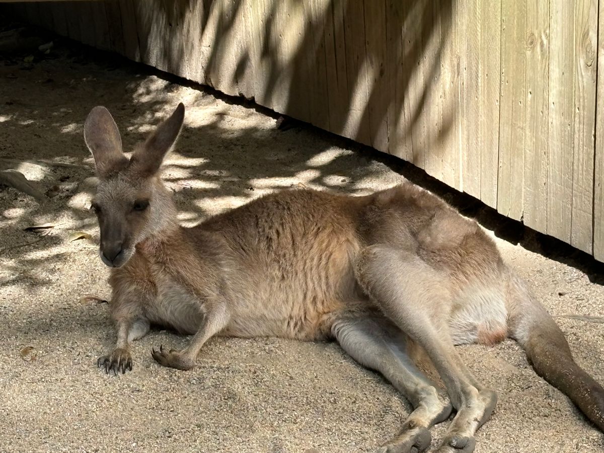ぴろぴろ様、この度はトロピックウィングスのツアーにご参加いただき誠にありがとうございました。楽しんでいただけて何よりです。レインフォレステーションには5種類のカンガルーの仲間が飼育されています。一番大きいのがイースタングレイ(オオカンガルー)、一番たくさんいるのがアジルワラビー(スナイロワラビー)、ちょっと見つけにくいですがこの他にスワンプワラビー、アカアシヤブワラビー、そして1頭だけカオグロキノボリカンガルーがコアラの飼育舎の横にいます。