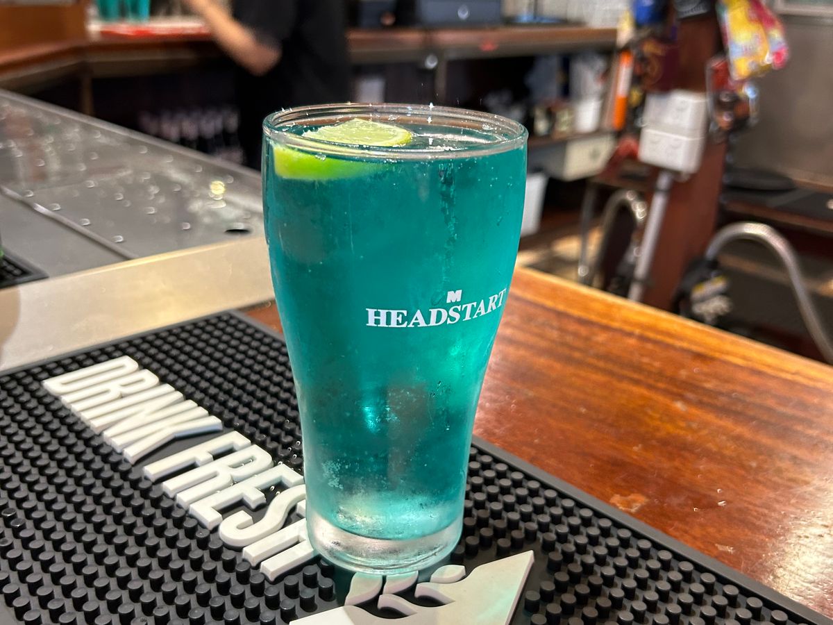 キュランダホテルでのランチも美味しかったです。大きなオージーバーガーと大きなフィッシュアンドチップスを2人で分け合いいただきました。青いビールも素敵でした。
