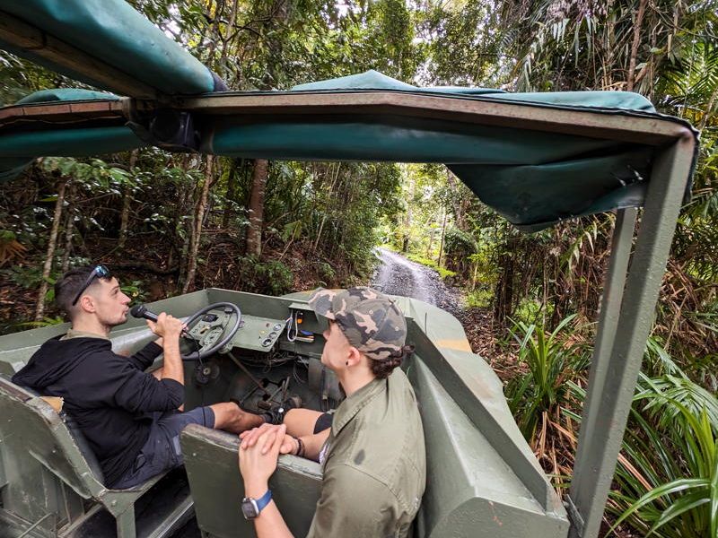 その後戦時中に使用していたアーミーダックに乗って熱帯雨林を見て回り、ラッキーなことに青い蝶を見れました。