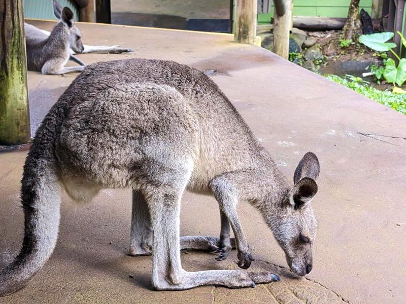 キュランダに着きレインフォレステーションへ行き選べるオプションのうちワイルドライフパークを選び見て回りました。コンパクトな動物園ですがオーストラリア特有の動物たちが揃っていてカンガルーやワラビーは道に寝ていて撫でることもできコアラも近くで見れました。