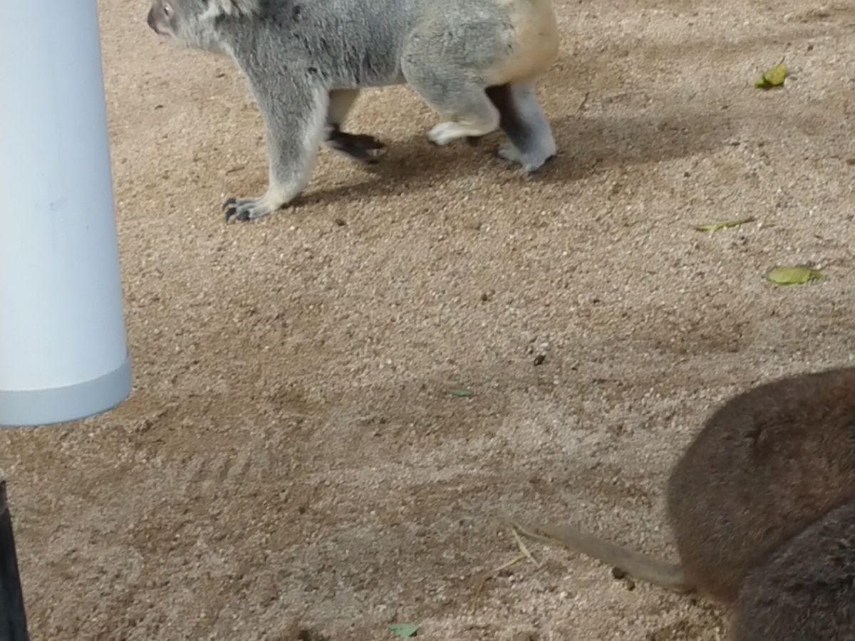 鈴のようなものを鳴らしながらコアラの気を引いてカメラを向けさせたすきに何枚か撮影し,その中で1枚をプリントアウトしてその場でもらえます.自分たちで選択することはできず,コアラがカメラを向いていることが優先されている気はしました.抱っこではなくタッチなので,絶対に抱っこしたいという人は注意が必要かもしれません.ただ抱っこは一瞬という話ですが,こちらのタッチは自分たちのカメラでもスタッフの方が撮影してくれたりフレキシブルに対応していただけました.時間指定で予約して入園時に確認したにもかかわらず現地にスタッフはおらず通りがかりのスタッフに聞いて対応してもらう感じになったので,現地でしっかり確認したほうがよいと思います.小さい動物園ですが,カンガルーやワラビーもいて,柵を越えて歩き回っているので餌をあげたり触れることもできましたし,クウォッカも見られたので,全体としてお勧めできると思います.