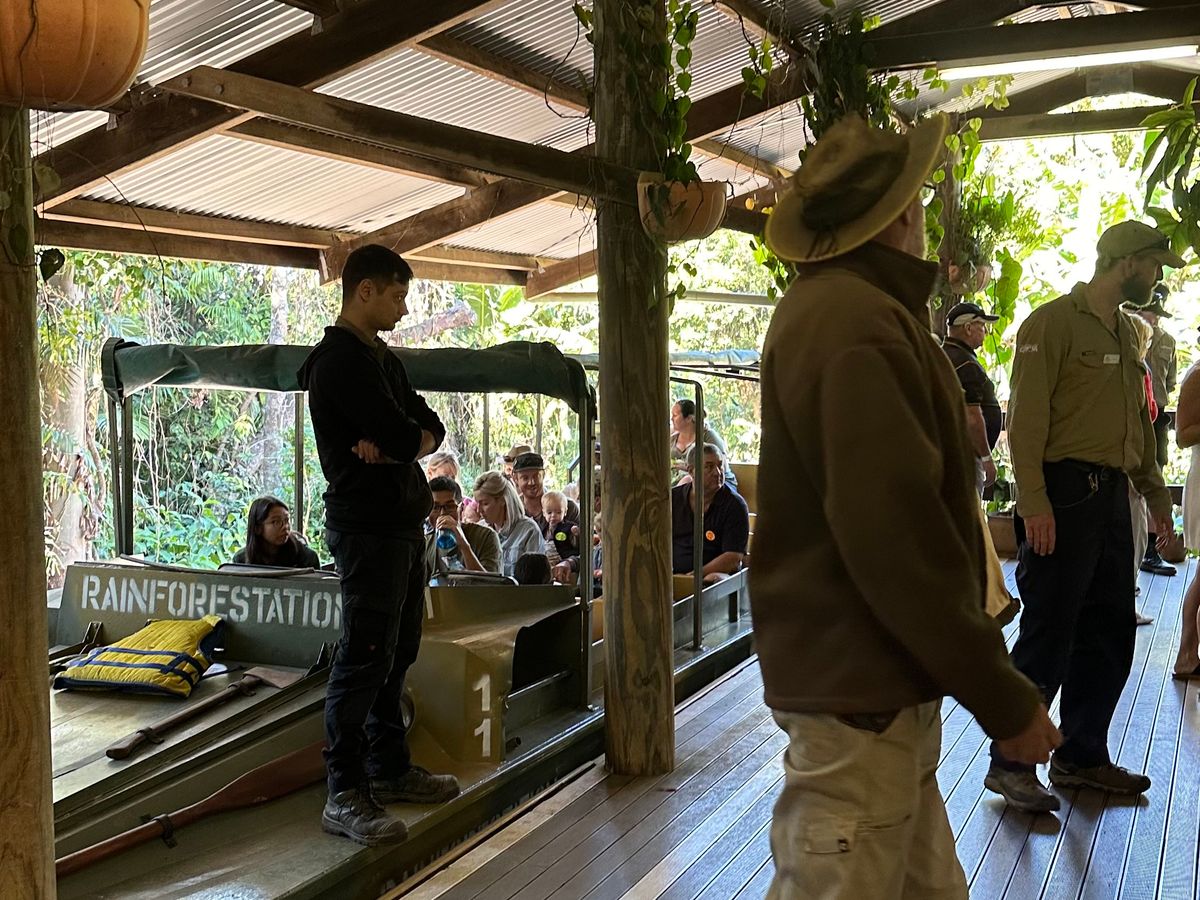 キュランダ村は小さな村でした。そこから私たち2組は小さな動物園とアーミーダック体験コースに向かいました。動物園では可愛いコアラたちを近くで見ることができ、カンガルーを触ったりヒクイドリを遠目に見ることができました。