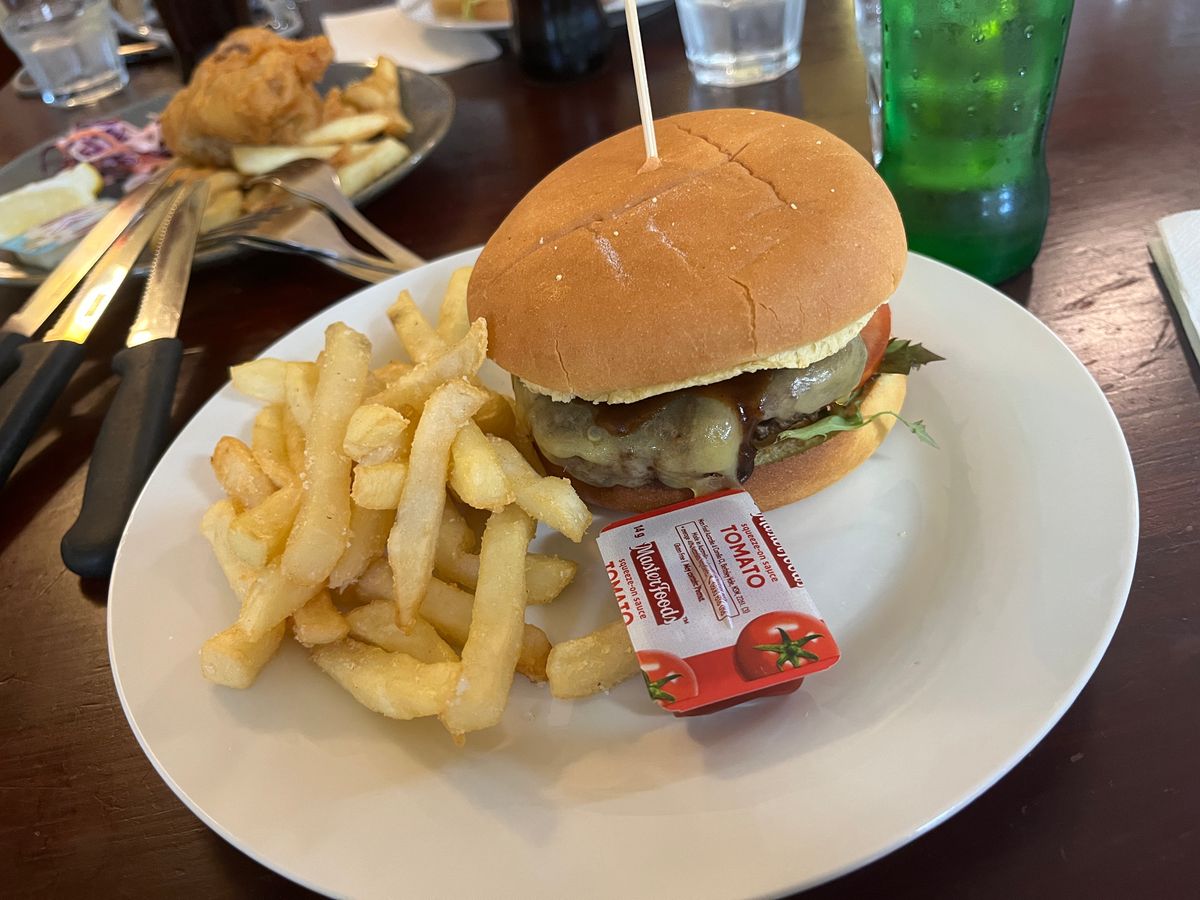 キュランダ村に着いたら、ハンバーガーとフィッシュチップスを食べて、観光しました。