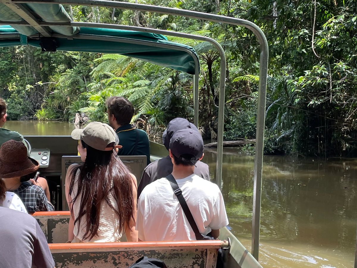 キュランダツアーは、ぜひ参加したいと思い、申し込みました。行きは、列車、帰りは、スカイレールでした。どちらも興味がありましたが、列車では、景色の良いところでは、スピードを落とし、撮影タイムがあり、良かったです。ガイドのひとみさんとダンさんの話は、ユーモアがあり、面白かったです。アーミーダックでのレインフォレストの探検は、水の中に入る時は、少しドキドキでした。ドライバーさんが、車を止めて、特徴のある木を説明して、ダンさんが通訳してくれました。一億五千年前の木々のある森林は、ジュラシックパークにいる気持ちになりました。