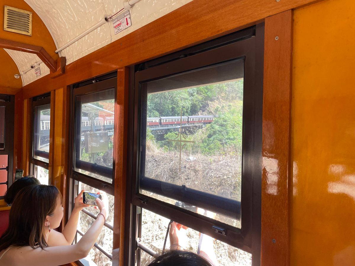行きは、キュランダ鉄道。写真スポットでは、途中で電車が止まって、ゆっくり写真が撮れてすごくよかった。ガイドさんの話も参考になりました。シーブリーズは、感じたような気はしました。