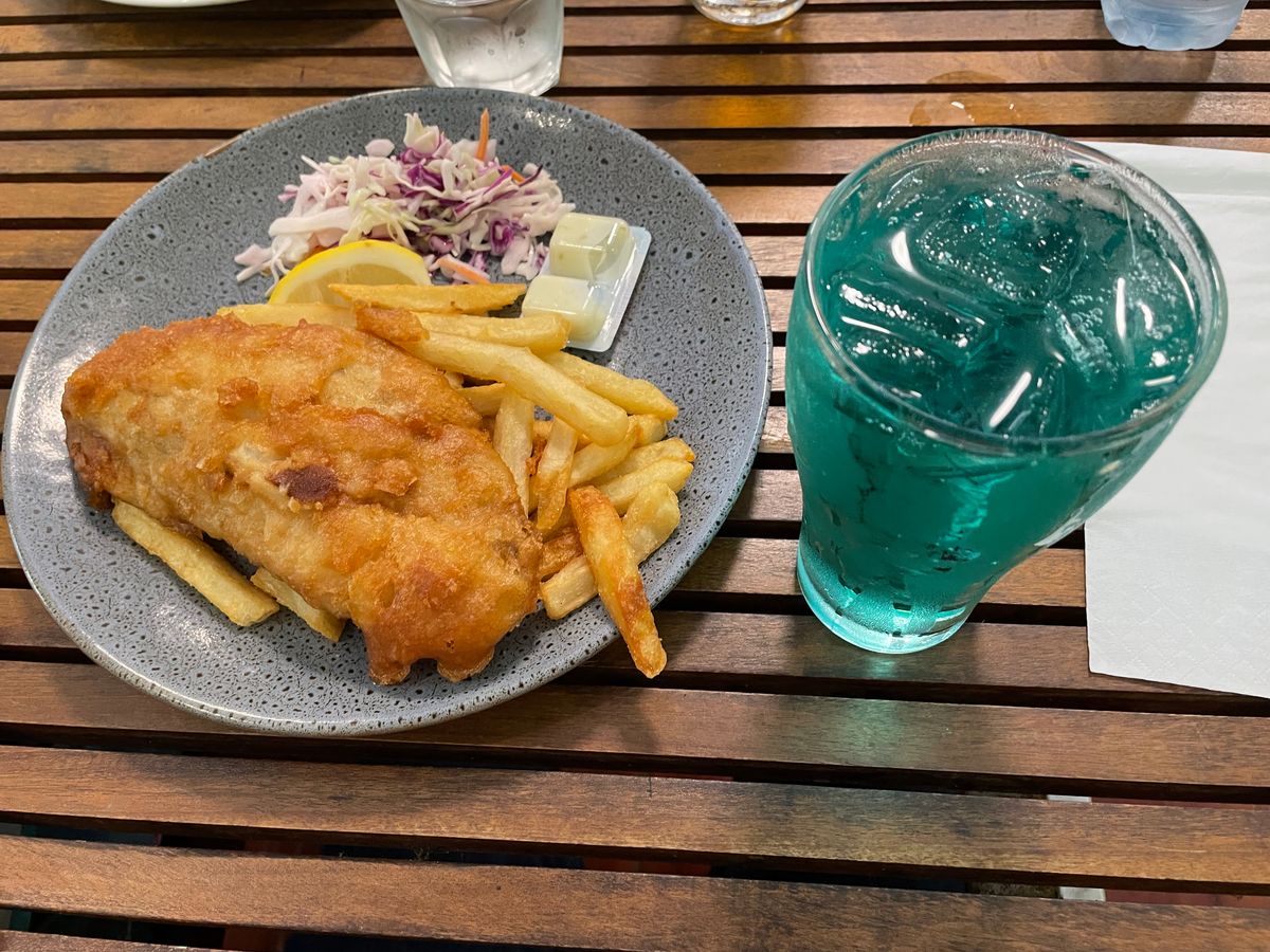 ランチには、おすすめの青いジンジャービールを飲み、大満足でした。