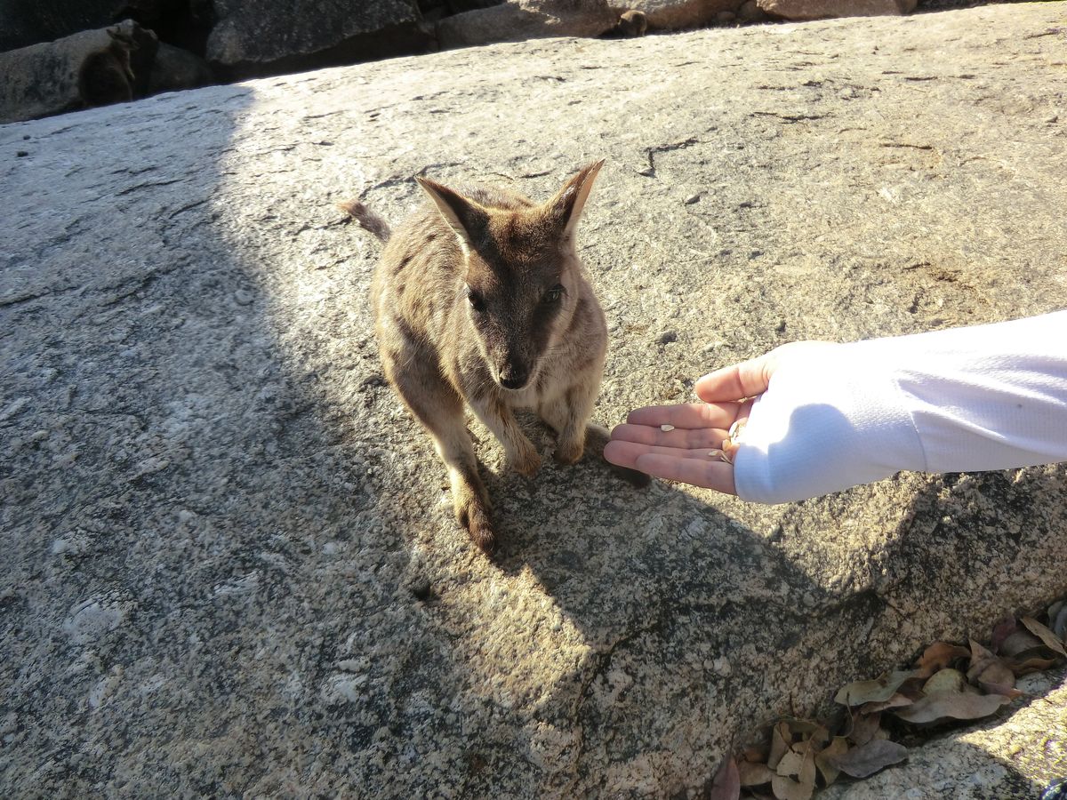 このツアーを選んだ一番の目的はロックワラビーの餌付けで、
