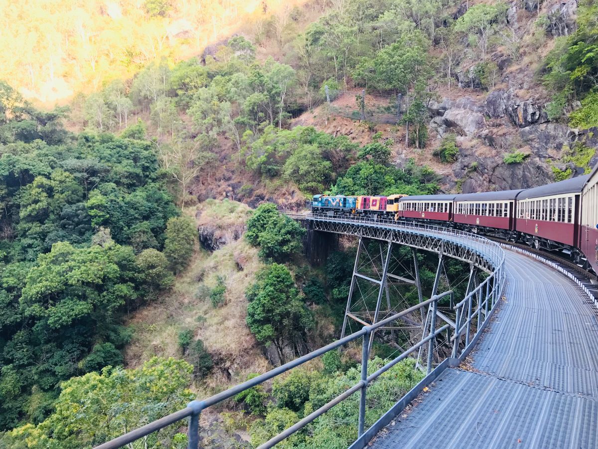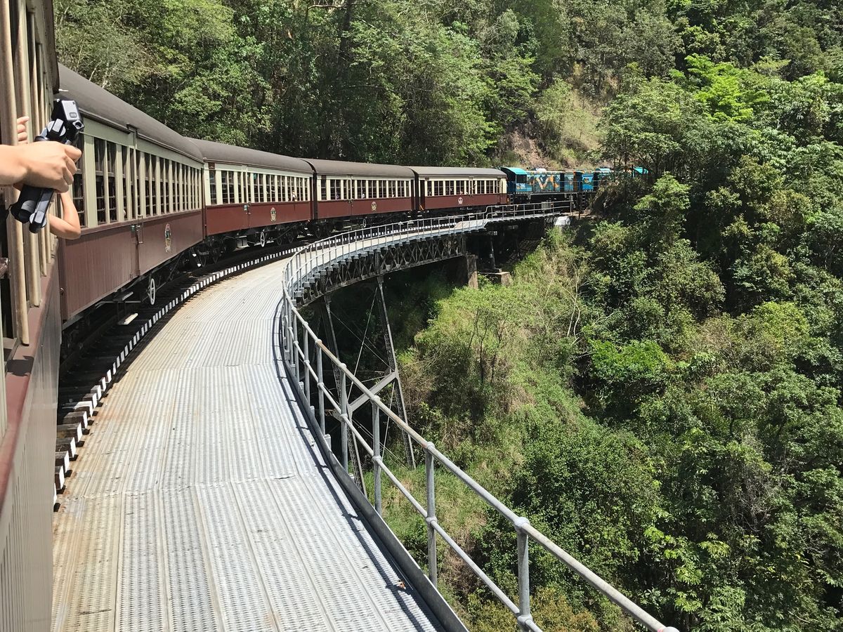 まずはスカイレールから始まり緑緑でほんといい景色でした!3回見れたら幸せになれると言われている青い蝶もたくさん見れました!昼のビュッフェではカンガルーのお肉とかワニのスープも飲めて美味しかったです!列車でもゆったり景色を見ながら過ごしあっという間に2時間経って終わりました!ガイドさんの説明も面白くてわかりやすくよかったです!!