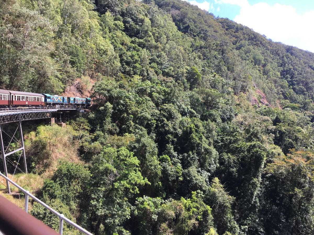 行きはキュランダ鉄道、帰りはスカイレールのコースでした!列車は写真を撮るには1番いい5号車でした。スカイレールは風が気持ちよくほぼ揺れもありません。安心して乗れました!