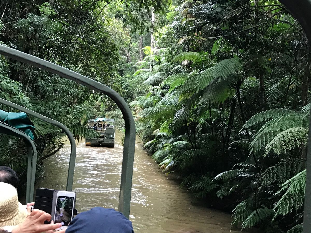 行きはスカイレール、帰りが列車でした。スカイレールからの景色は、本当にジャングル!霧が出て、真っ白のところもありましたが、神秘的でした。アバターの撮影場所だったそうです。ジャングルの中を行く、アーミーダックは、スリルもあって、楽しかったです。小さな動物園では動物が近かった!特にコアラはフワフワで、目がつぶらで、とても可愛かったです。1日中、楽しめるツアーでした!カイドさんも丁寧で、楽しいトークもあり、面白かったです。ありがとうございました。