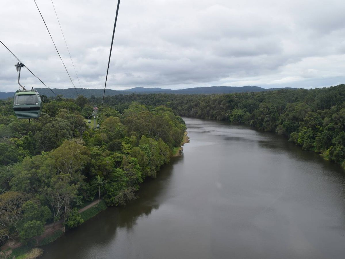 行きはスカイレールに乗りましたが、高い所からの景色は素晴らしく、また、幸運の蝶(ユリシス)もスカイレールから見ることが出来て大興奮でした。着いたら、ランチでしたが、カンガルーの串焼きやワニのスープ等日本ではなかなか食べることの出来ない物が食べられて良かったです。また、流れ作業のようでしたが、コアラを抱っこすることが出来て大満足でした。小さな動物園もツアーに含まれており、動物と触れあえたりも出来て良かったです。キュランダ村は自由行動でしたが、時間もたっぷりあり、お土産を見たり、アイスを食べたりと楽しく過ごせました。帰りはキュランダ鉄道に乗りました。全貌が見えない位長い列車で、列車の中も造りが素敵で、窓から見える景色も最高でした。