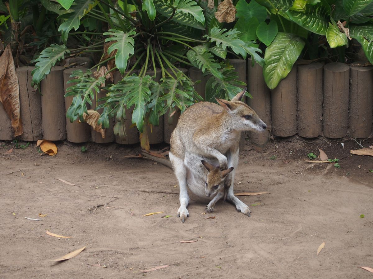 列車に乗りキュランダへ、スカイレールに乗り麓におり、バスで再びキュランダへ。全てのルートから熱帯雨林を楽しんだあとは動物探しへ出発。多くは見れなかったけど黒鳥におなかの中にいるロックワラビにと珍しい動物達が見れました。